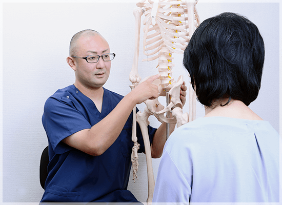 症状の原因がどこにあるのか、なぜ起こるのか、改善するためのポイントを丁寧に説明してもらいました。 そして、原因に対して施術してもらい、さらに治療効果が持続するセルフメンテナンスを教えてもらい、自分なりに行いました。原因にアプローチする施術に関しては、ポイントを中心に行ってもらい、逆に気持ち良いくらいでした。