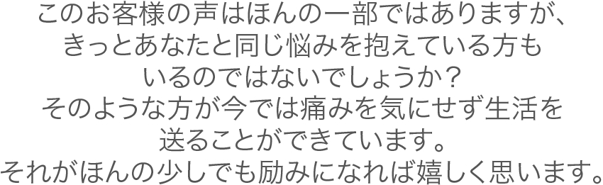 辛い症状で悩まれている方から多くの改善の声を頂くことができました。