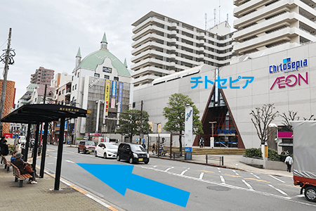 1国道206号線(長崎方面・長与時津方面)から昭和町通りへ曲がり、右手にチトセピアを見ながら1つ目の信号まで直進します。