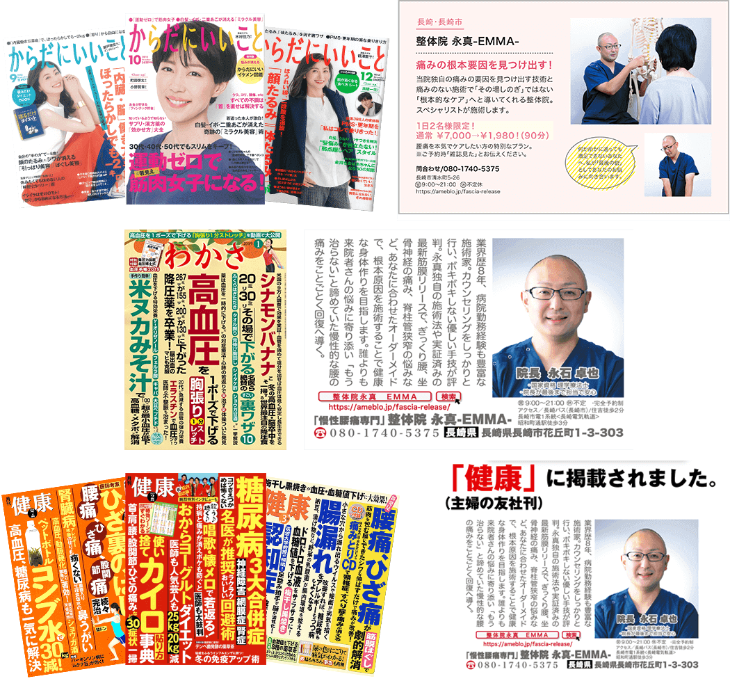 全国発行誌「からだにいいこと」「わかさ」「月刊健康」に、